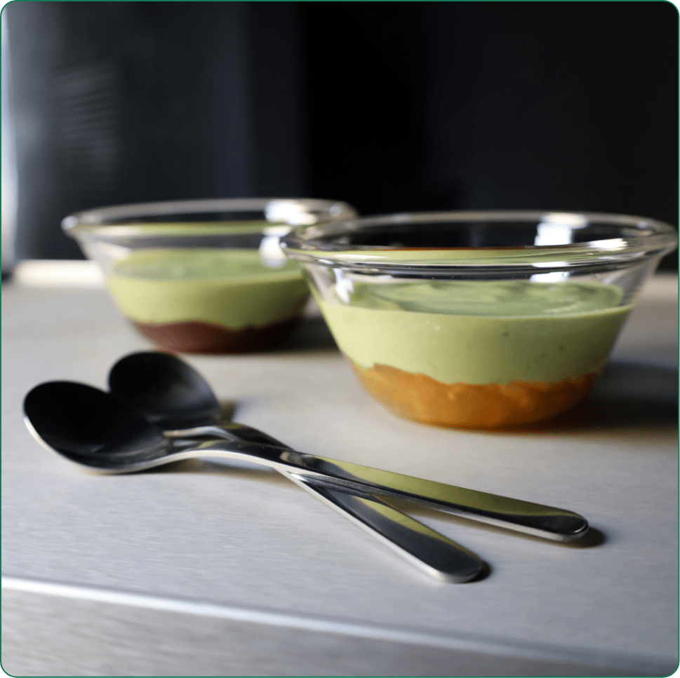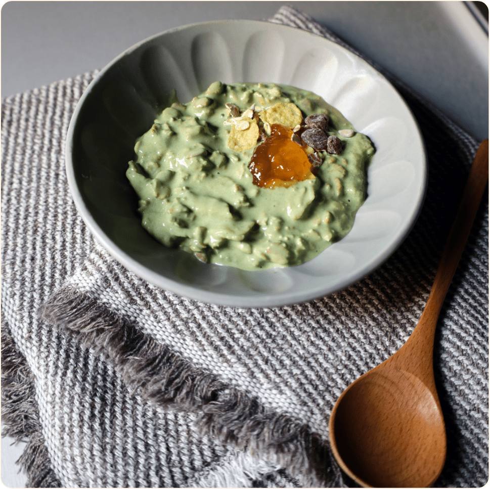 Tea-CHEFで作ったヨーグルトにミューズリーを1晩漬け込むと、緑鮮やかなオーバーナイトミューズリーができます。