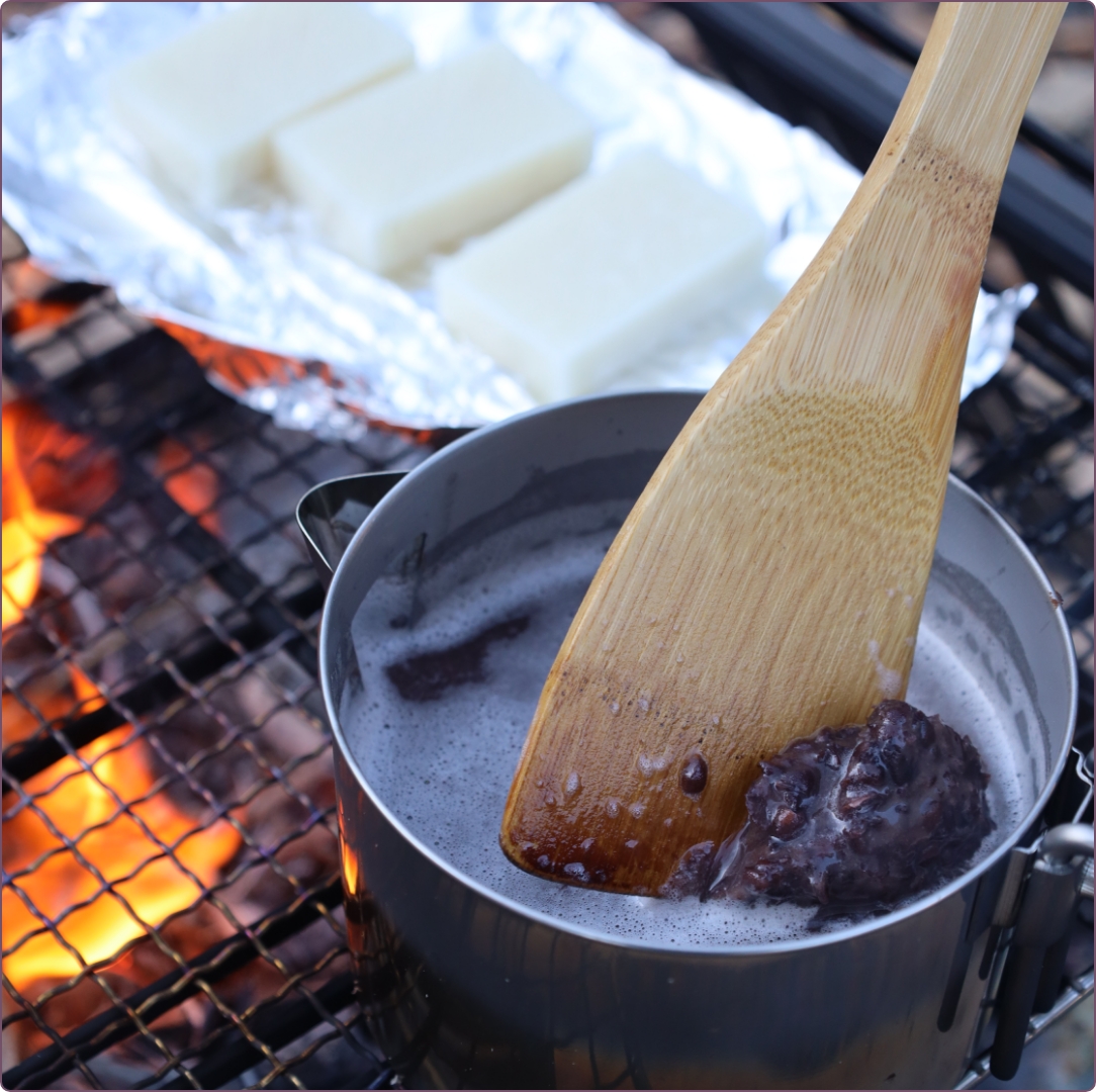 市販のあんこを使用して、簡単にぜんざいを作ります。 お鍋一つでできるため、キャンプやバーベキューでも楽しめます。